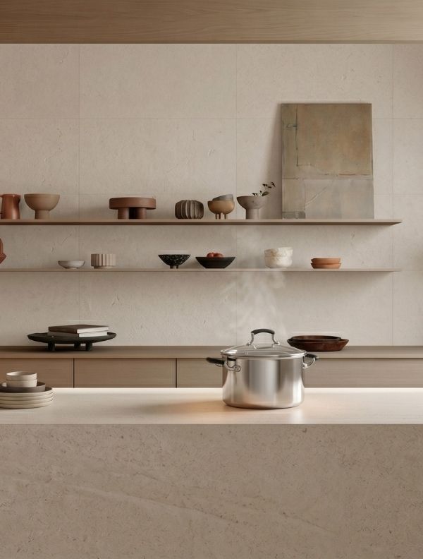 Cada ambiente es una composición de materiales, texturas y acabados seleccionados con criterio. Nuestra sección de Espacios te permite recorrer entornos completos —cocinas, baños, salones y terrazas— para descubrir cómo cada pieza cobra sentido en su contexto real.